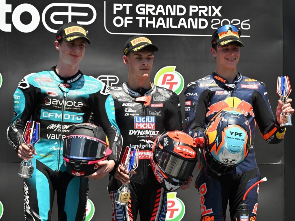 Uncategorized Valentín Perrone, magistral en el inicio del Moto3: largó 14° y en la última curva consiguió su primer podio 2026 en el GP de Tailandia hace 2 mesesMenos de 1 min26,0 Vistas Fue en la primera de la temporada de la segunda telonera del MotoGP, la máxima categoría, donde se impuso el italiano Bezzecchi y abandonó el campeón Marc Márquez. Mirá el video. Apareció primero en Bola Vip Acciones: TE RECOMENDAMOS Uncategorized Un Real Madrid en crisis por la salida de Xabi Alonso visita al Albacete con el debut de Arbeloa y una chance de oro para Mastantuono hace 3 meses Uncategorized El Clooy – Bipolar hace 1 semana Uncategorized Messi y los riesgos del sí a Trump y el no a Biden hace 2 meses Uncategorized Así quedó la tabla de posiciones de la Champions League tras la última fecha: todos los clasificados a octavos de final y a los Playoffs hace 3 meses Uncategorized La tremenda caída de cara del gigante Victor Wembanyama que estremeció los Playoffs de la NBA hace 2 días